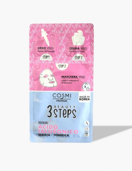 •Το COSMI Beauty 3 Steps Hyaluronic Acid είναι μια θεραπεία ομορφιάς με ενυδατική και τονωτική δράση κατασκευασμένη στην Κορέα. Προσφέρει μια ολοκληρωμένη θεραπεία τριών βημάτων για ορατά φωτεινότερο, πιο ελαστικό και ενυδατωμένο δέρμα.